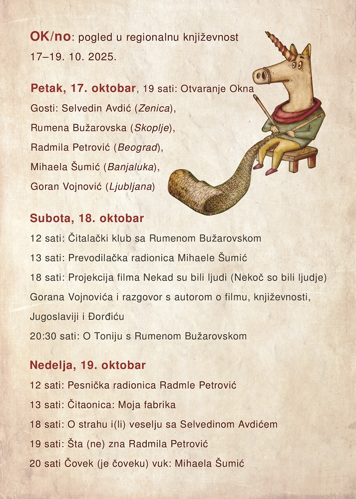 Konačno, OK/no kao regionalni festival književnosti danas može da ima dva protivnika. Jedan je nacionalistička i populistička kultura, kojoj je festival potpuno stran: anacionalan, elitistički, tiho i nenamerno jugoslovenski, ličan i slobodan, daleko iznad linija lošeg ukusa i bljuvotina kojima su danas na svim nivoima u javnosti širom otvorena vrata. Ako se i zainteresuje za nešto ovaj populistički demon, to sigurno neće biti poezija ili feminizam. Drugi je znatna nezainteresovanost za kulturu, uopšte, i za književnost, i za biblioteku, i za regionalnu književnost u biblioteci. Ukoliko kultura dotiče, to je niskoesteetsko, popularno, bezbedno i komforno. Takođe, festival može imati dva saveznika. Jedan je iskustvo biblioteke, vezano za zainteresovanost čitalaca za knjige koje pripadaju regionalnoj književnosti. Drugi je u istoriji kulture grada potvrđena tradicionalna okrenutost onome što je zajedničko susednim kulturama, jer je grad od svih tih kultura i sastavljen (iako je danas najveća zastava u gradu, kakve nikada nije bilo u starom Boru, nacionalna, a ne rudarska).
